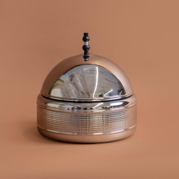 Sunsteel Food Container Size: Capacity 2.5 Liter Color : Silver Dimensions: 28 cm Width 8 cm Inner Height 13 cm Outer Base Height 13 cm Cover Height