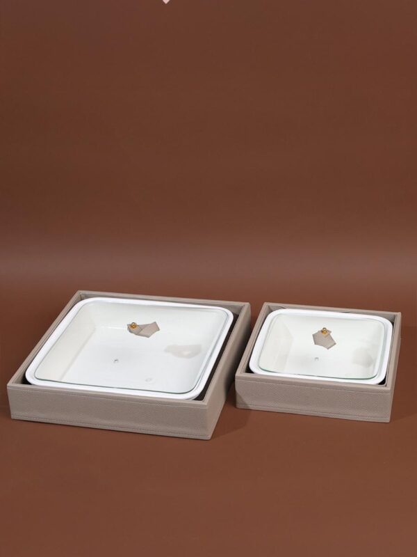Set of porcelain and gray leather: Box Size: 14+ 12