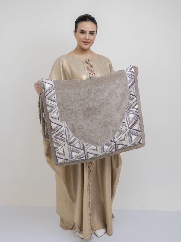 The Ramadan is a deficiency: – Sponge prayer rug designed by us – a box of wood and seashells – a velvet bag designed by us – a divided Holy Quran