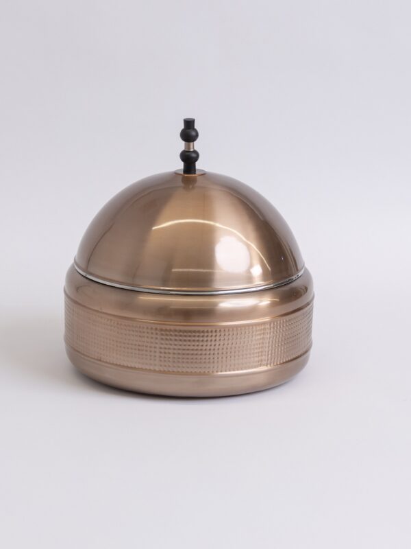 SALE Sunsteel Food Container Size: 2.5 Liter Capacity Color: Bronze Dimensions : 28 cm Width 8 cm Inner Height 13 cm Outer Base Height 13 cm Cover Height