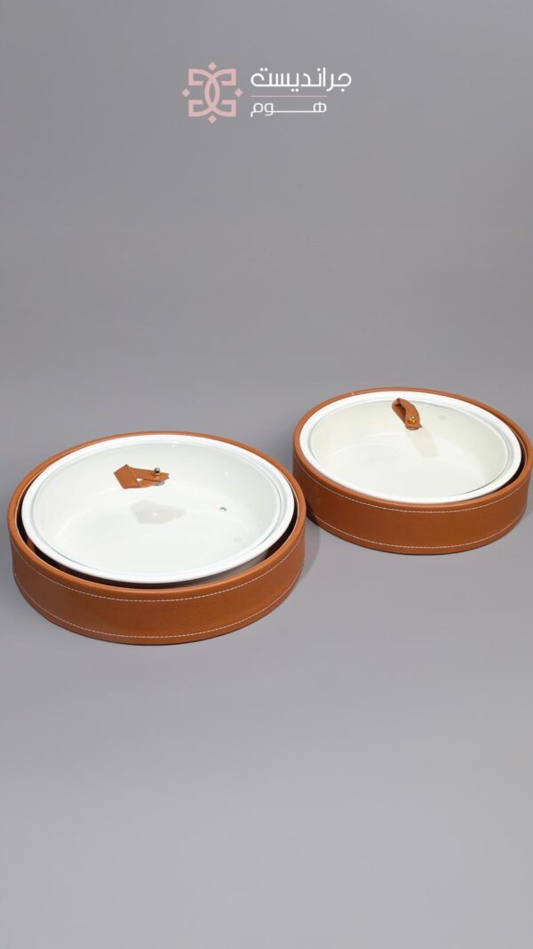اواني من البورسلان والجلد البني مقاس : 10 شكل : دائري